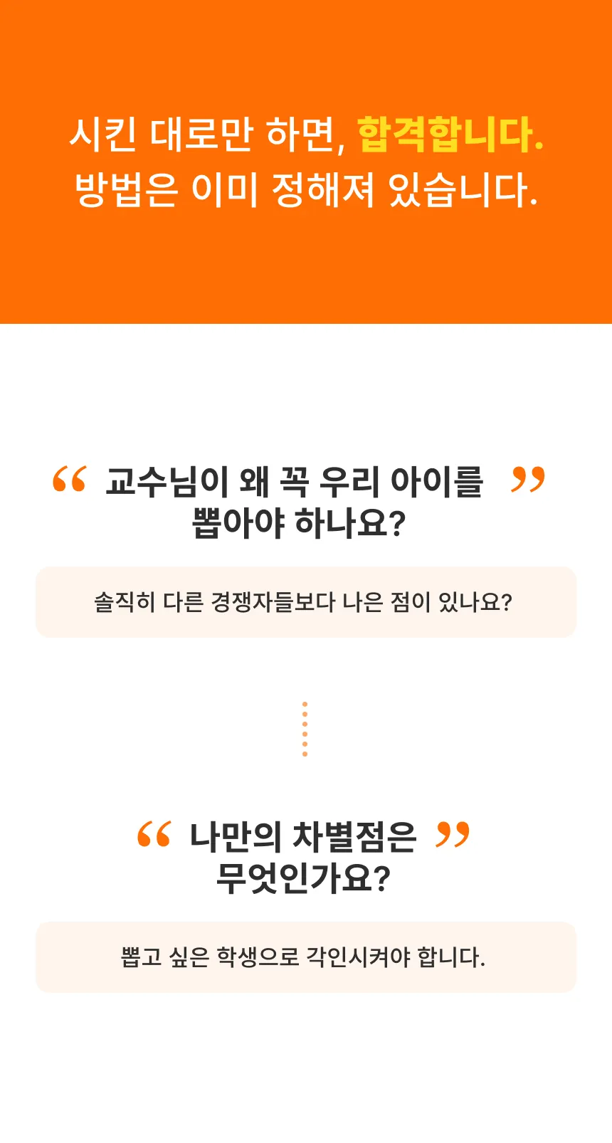 저희는 공장식으로 찍어내지 않습니다. 합격 가능성을 극대화할 수 있는 학생에게만 집중합니다.