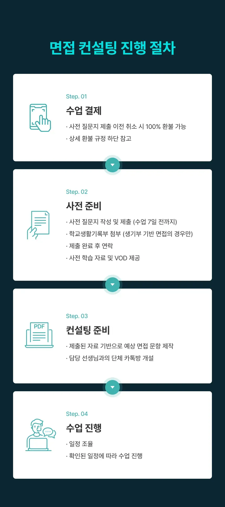 학생의 생기부와 성적을 검토하여 진행 가능한 경우에만 개별 연락드립니다.