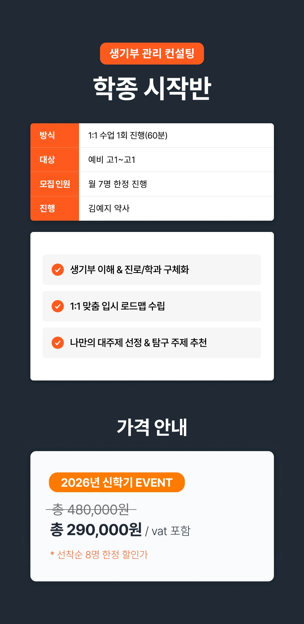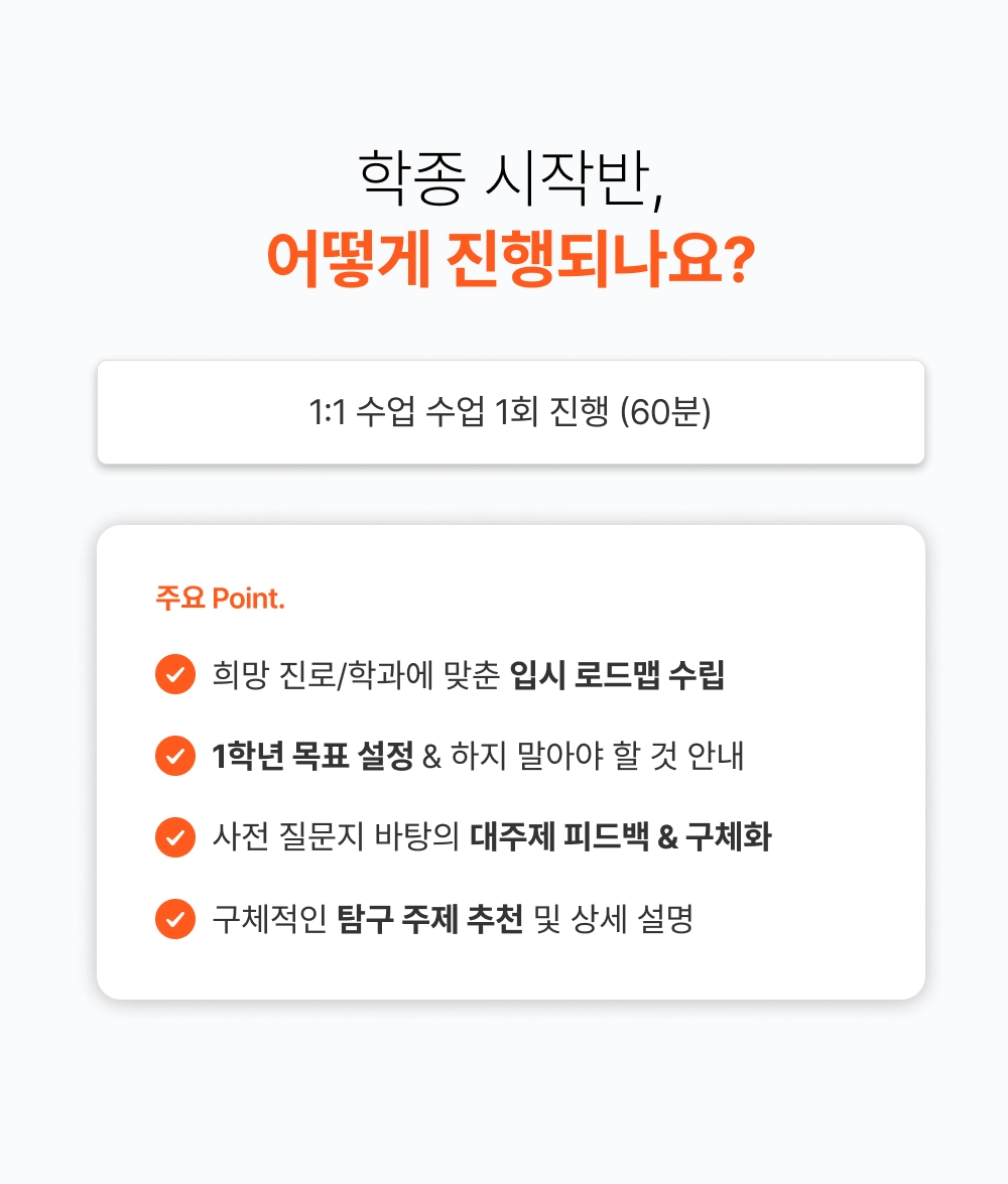 고1이 되기 전 겨울방학 때 진행하시는 것을 추천드리나, 1학년 학기 중에 진행하여도 문제가 없습니다.